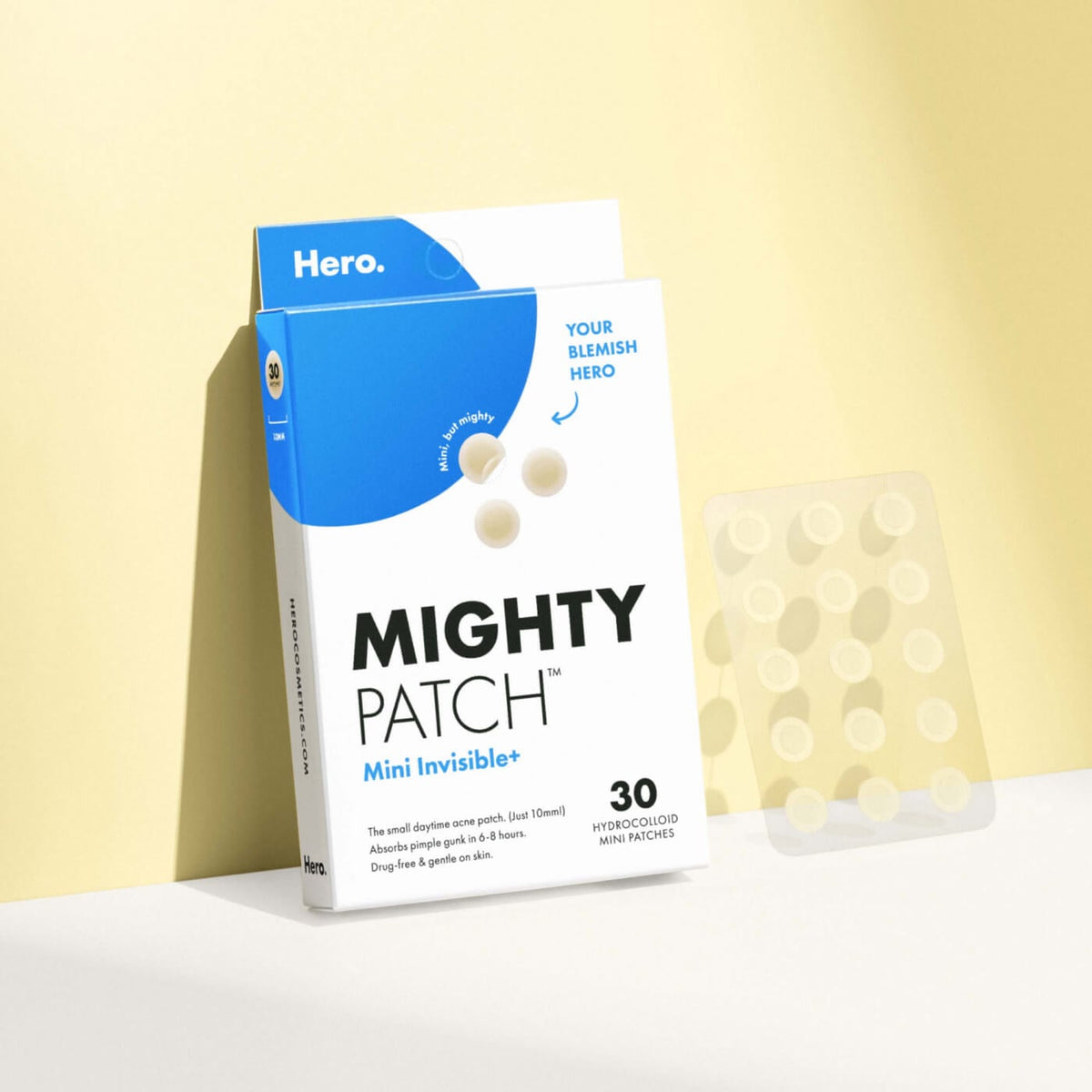 Don’t stress– Mighty Patch™ Mini Invisible+ patches absorb gunk in 6-8 hours. Just put one on, start your day, and forget your zit is even there.